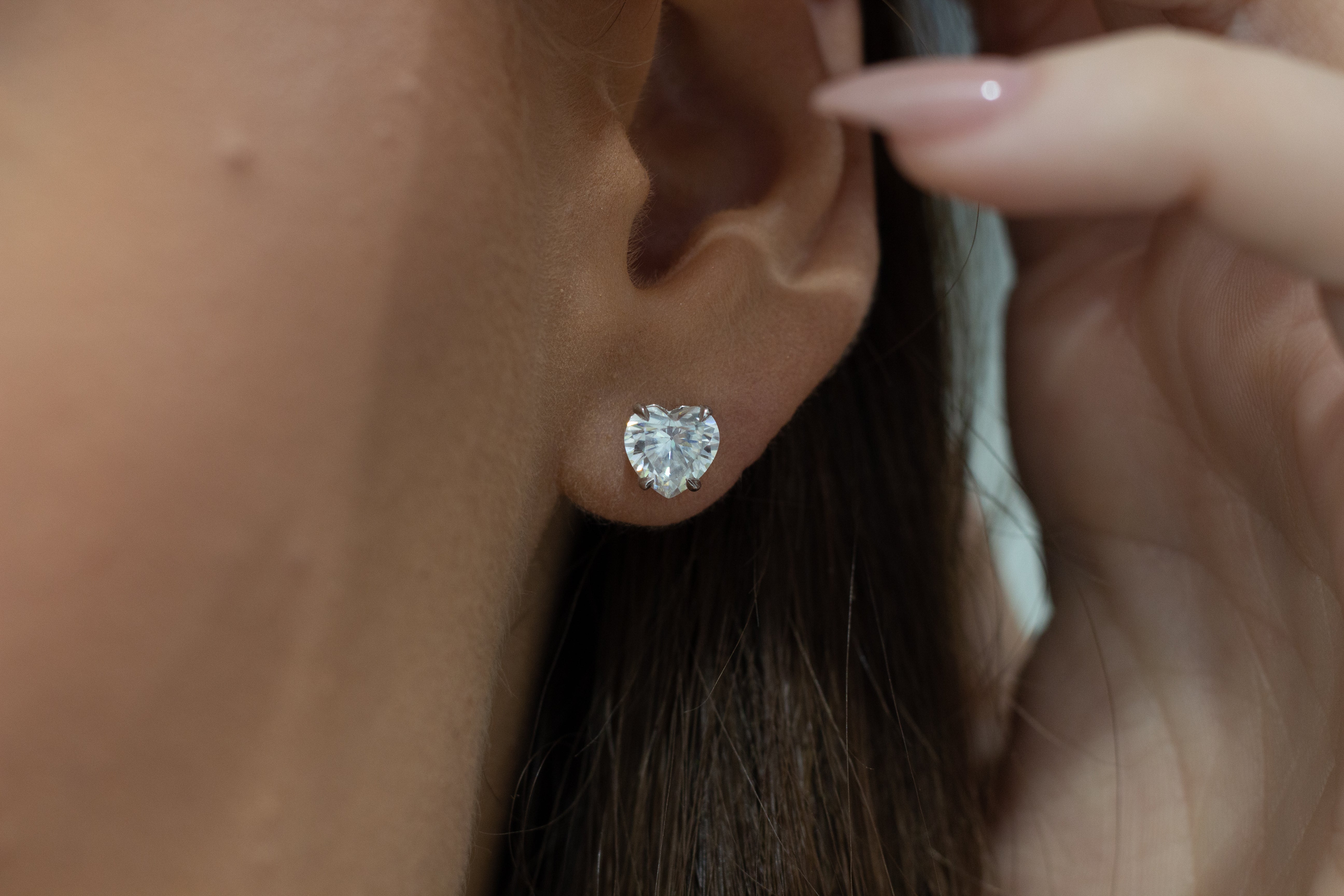 E101 ~ Moissanite ~ Heart Moissanite Earrings