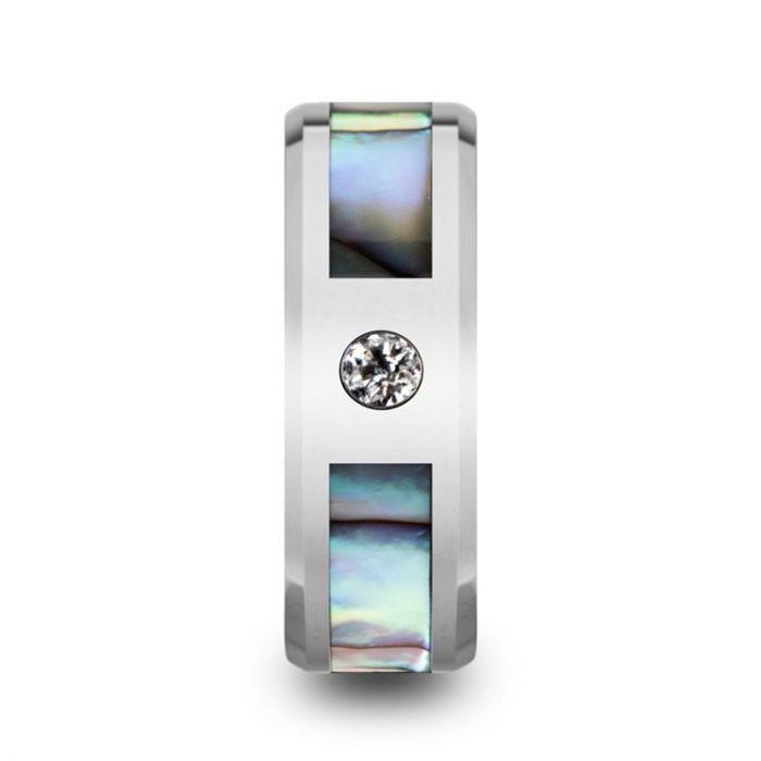 HONOLULU Mother of Pearl Inlay Tungsten Carbide Ring with Beveled Edges and White Diamond